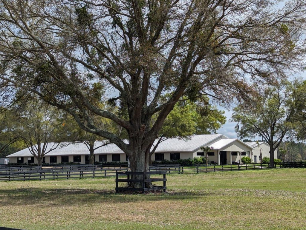 HJ Barn: 28 stalls with 4 tack rooms, thoroughbred training rental barn with access to racetrack
